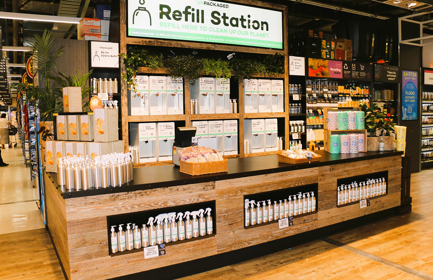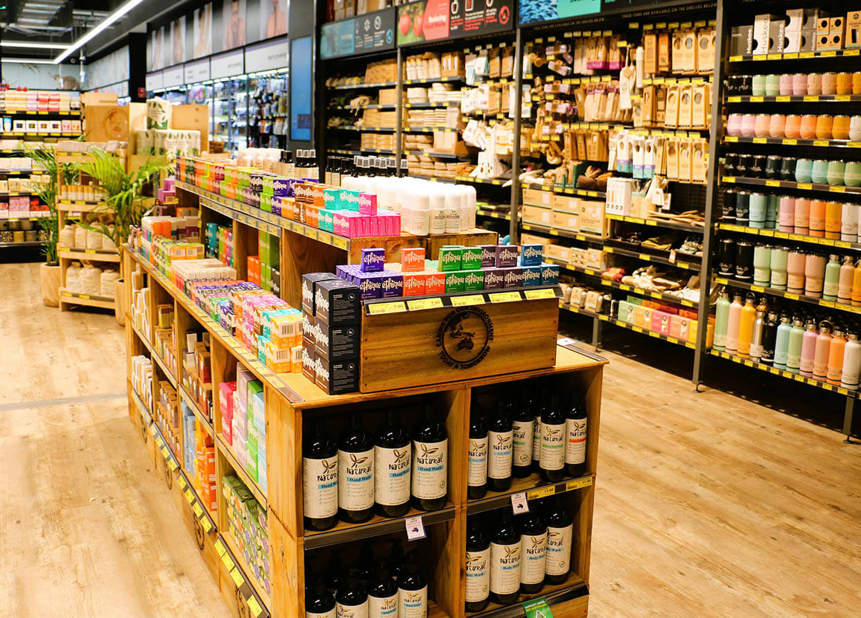 The store has a dedicated sustainability area that stocks a huge range of reusable products, low plastic options, as well as cleaning, health and beauty and household items that all have minimal impact packaging and ingredients.